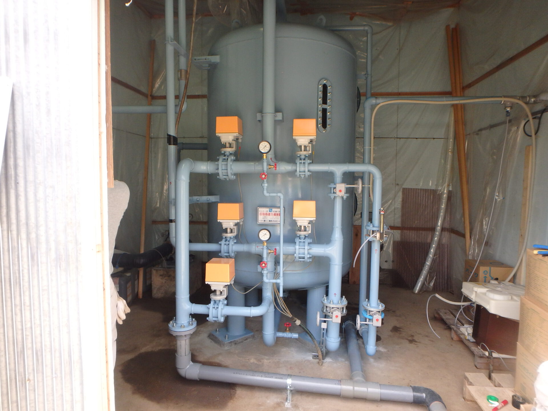 最後にタンク内に水を入れて、残留塩素の測定と水質検査を行います。